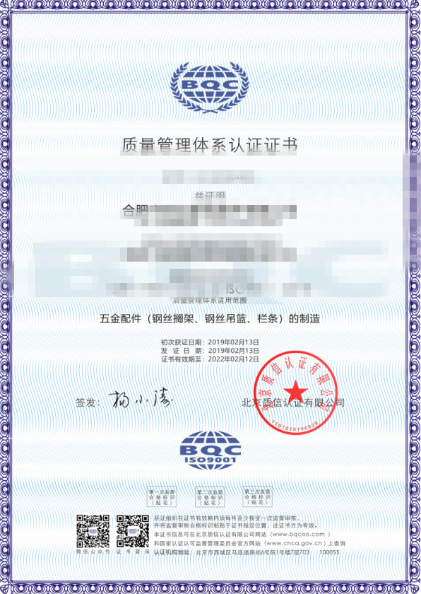• 安全檢測ISO質量管理體系認證證書